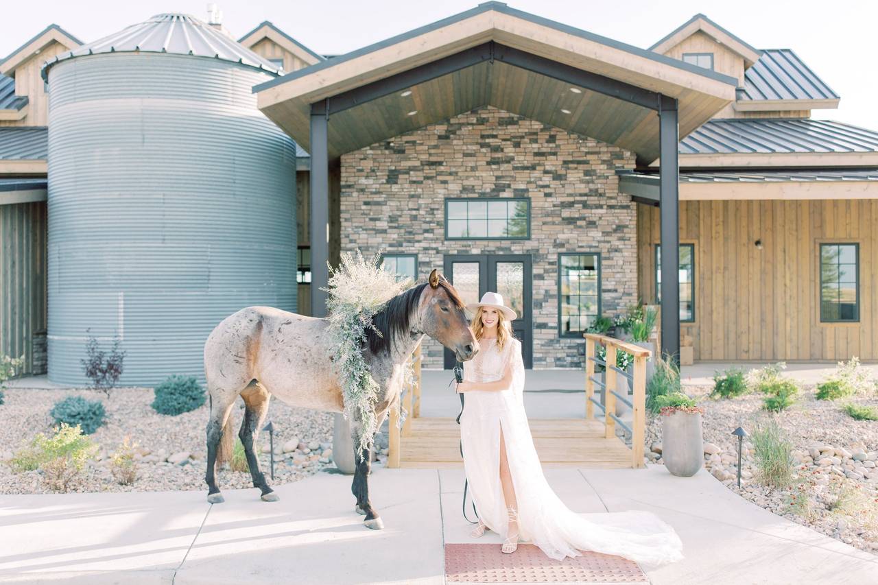 Bonnie Blues Event Venue is a beautiful farm style venue in Elizabeth, CO. This venue is home to a delightful array of farm animals! The presence of these friendly animals adds a special touch to weddings, corporate events, and family gatherings, creating an unforgettable experience for all attendees. You can’t beat beautiful views and cute animals!
